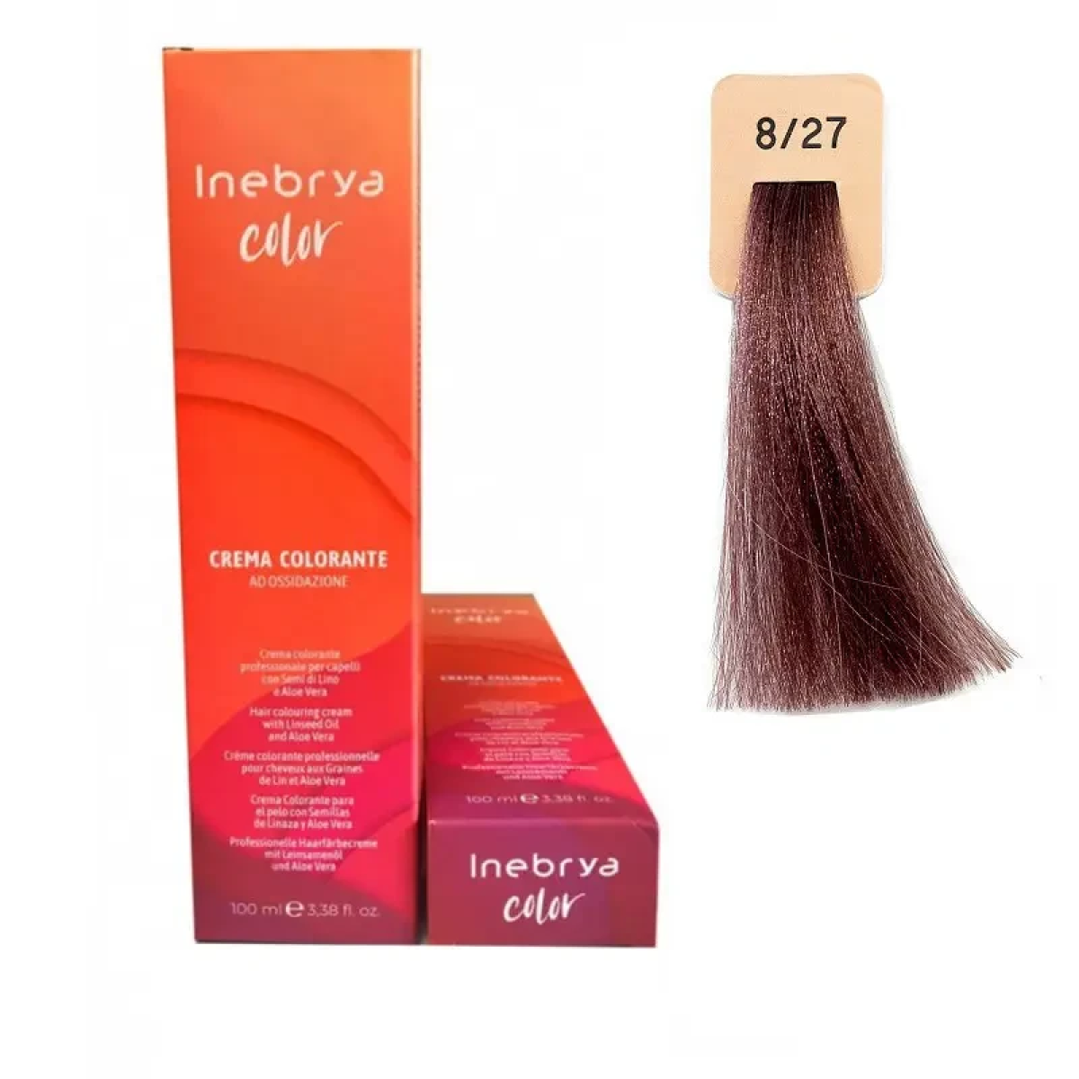 Крем-фарба для волосся Inebrya Color Linseed Oil and Aloe Vera 8/27 світло-русявий пудровий блондин 100 мл